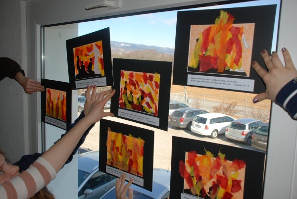 Les enfants vont faire un tableau vitrail en papier de soie