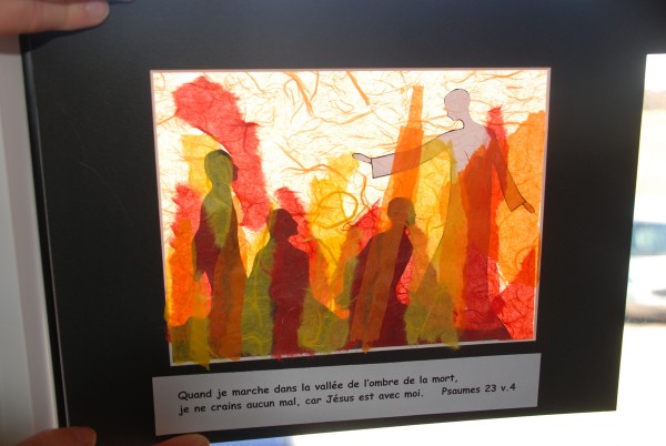 Vous allez faire un tableau en papier de soie des 4 personnages dans la fournaise ardente !
