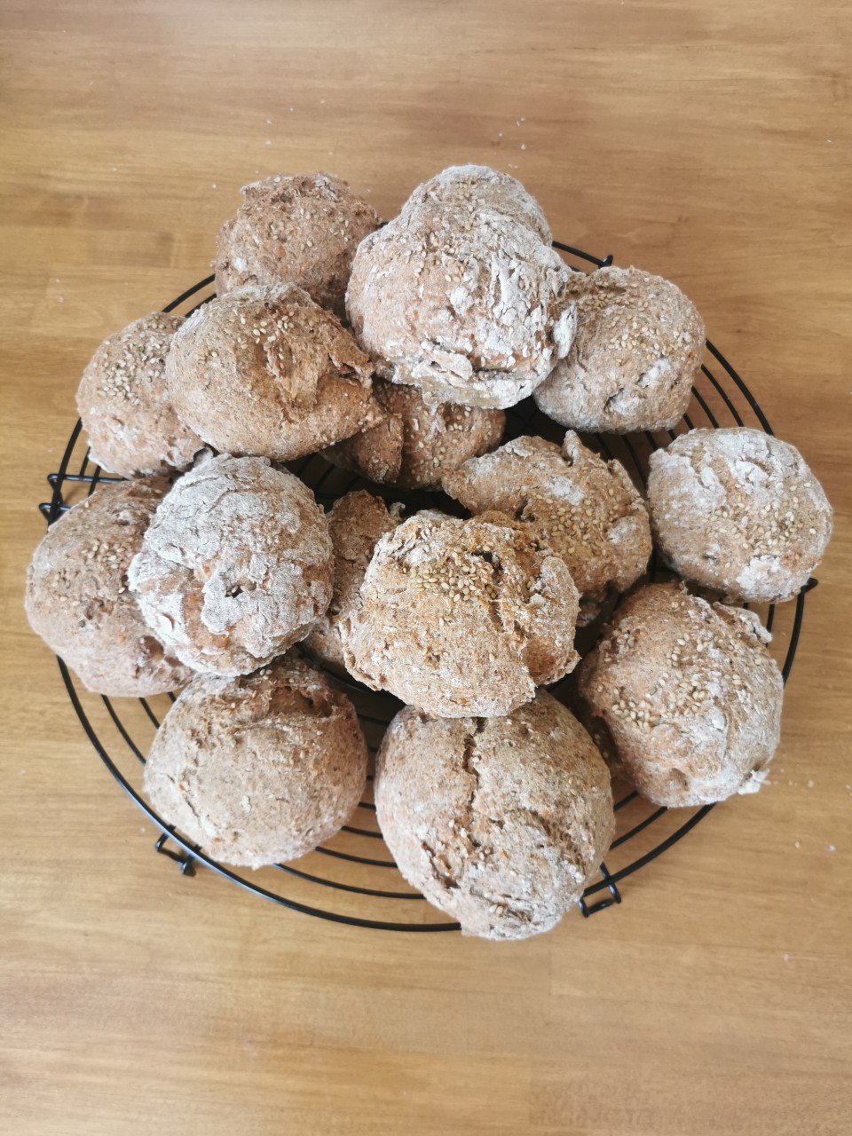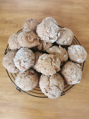 - Mets tes petits pains sur le papier sulfurisé et note ton nom dessus au crayon gris.
