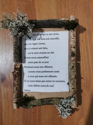 Jésus a dit la prière à ses disciples. Vous allez l'encadrer avec des rondins de bois !