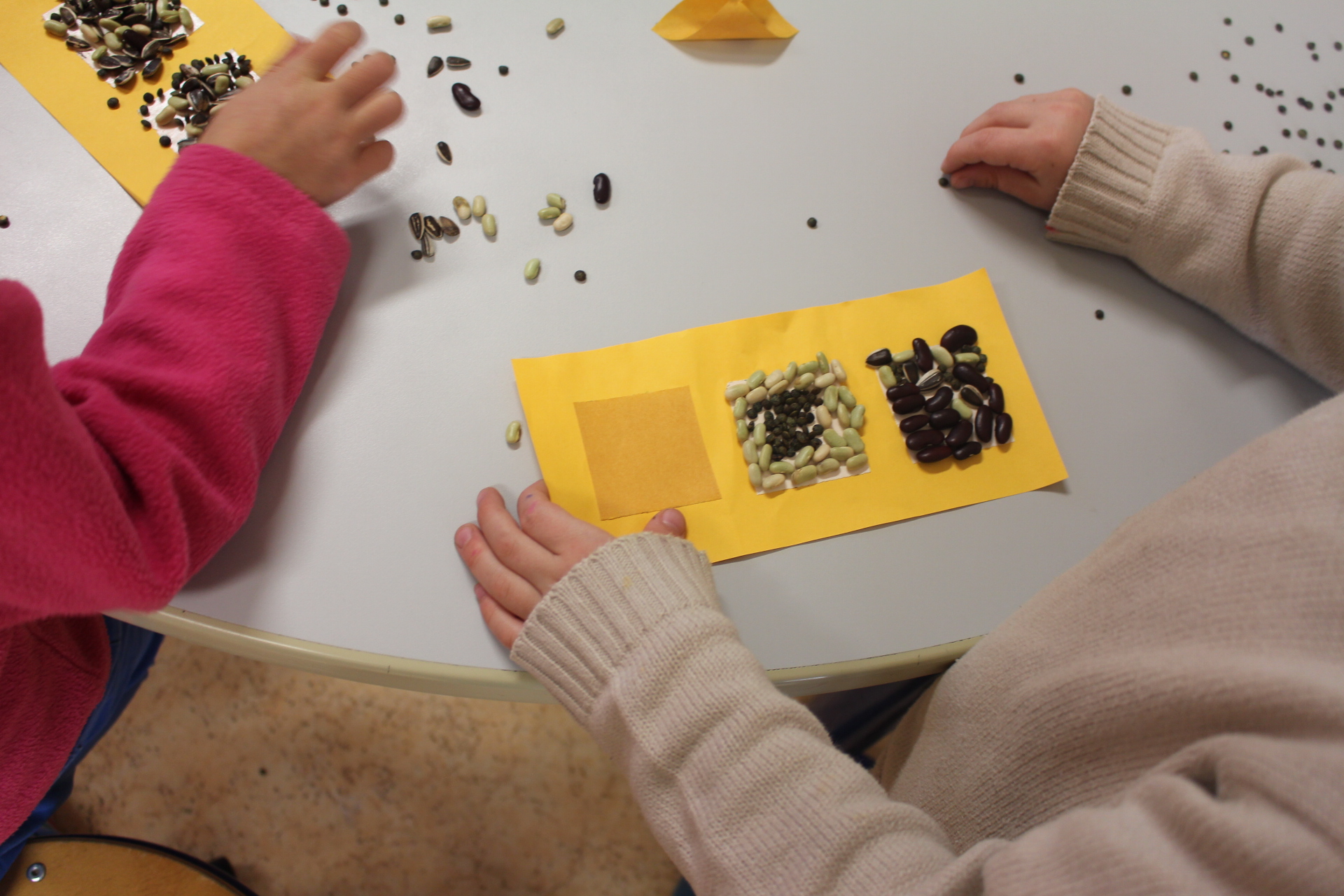 Les enfants feront un tableau avec des graines